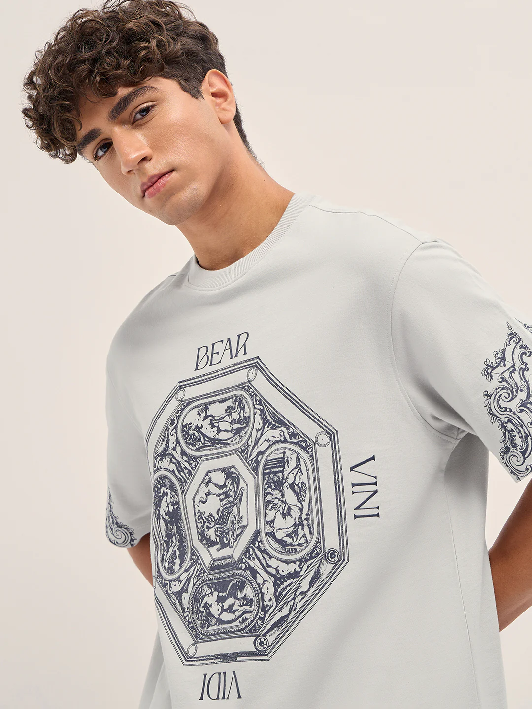 Light Grey Mythology Graphic Print Oversized Crew Neck T-Shirt
